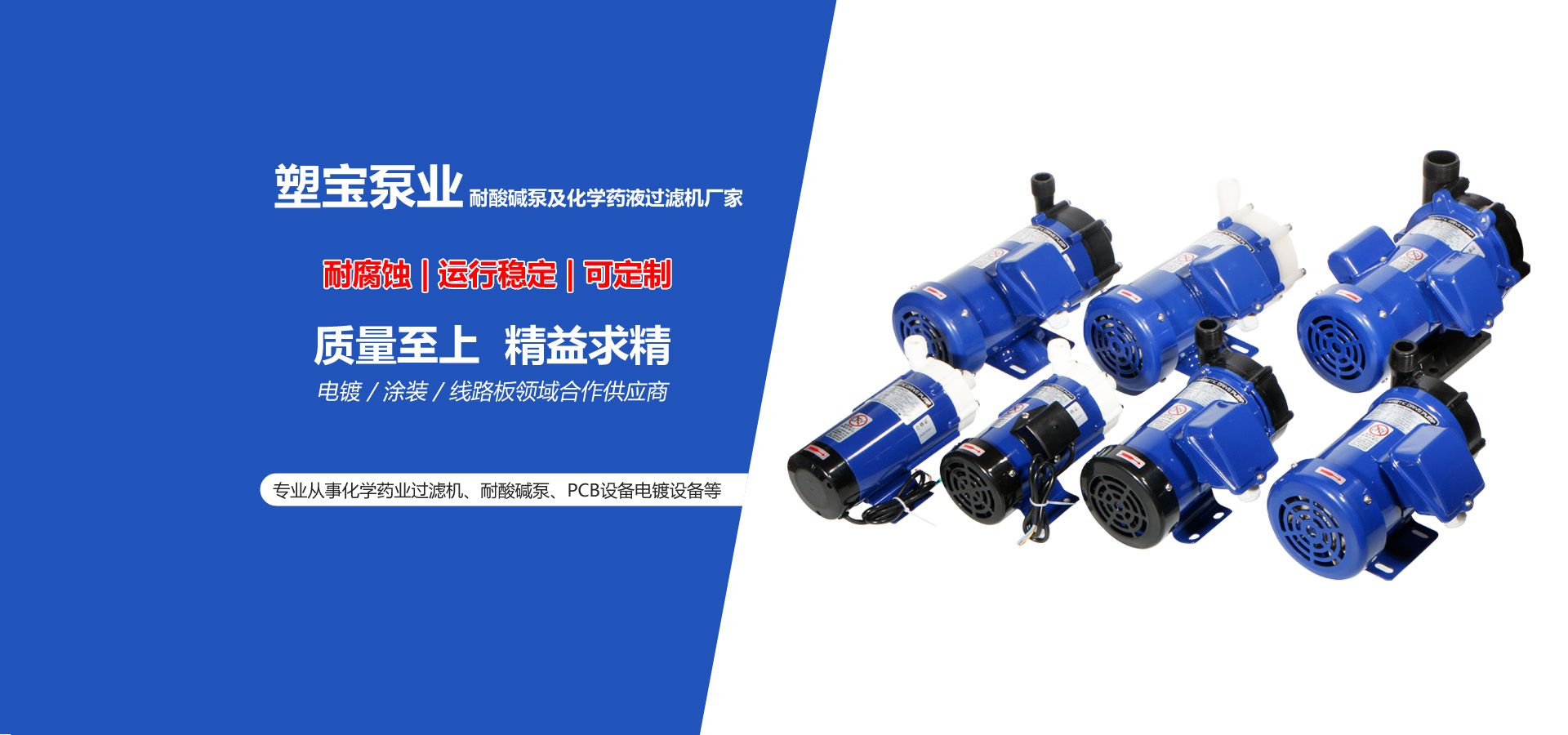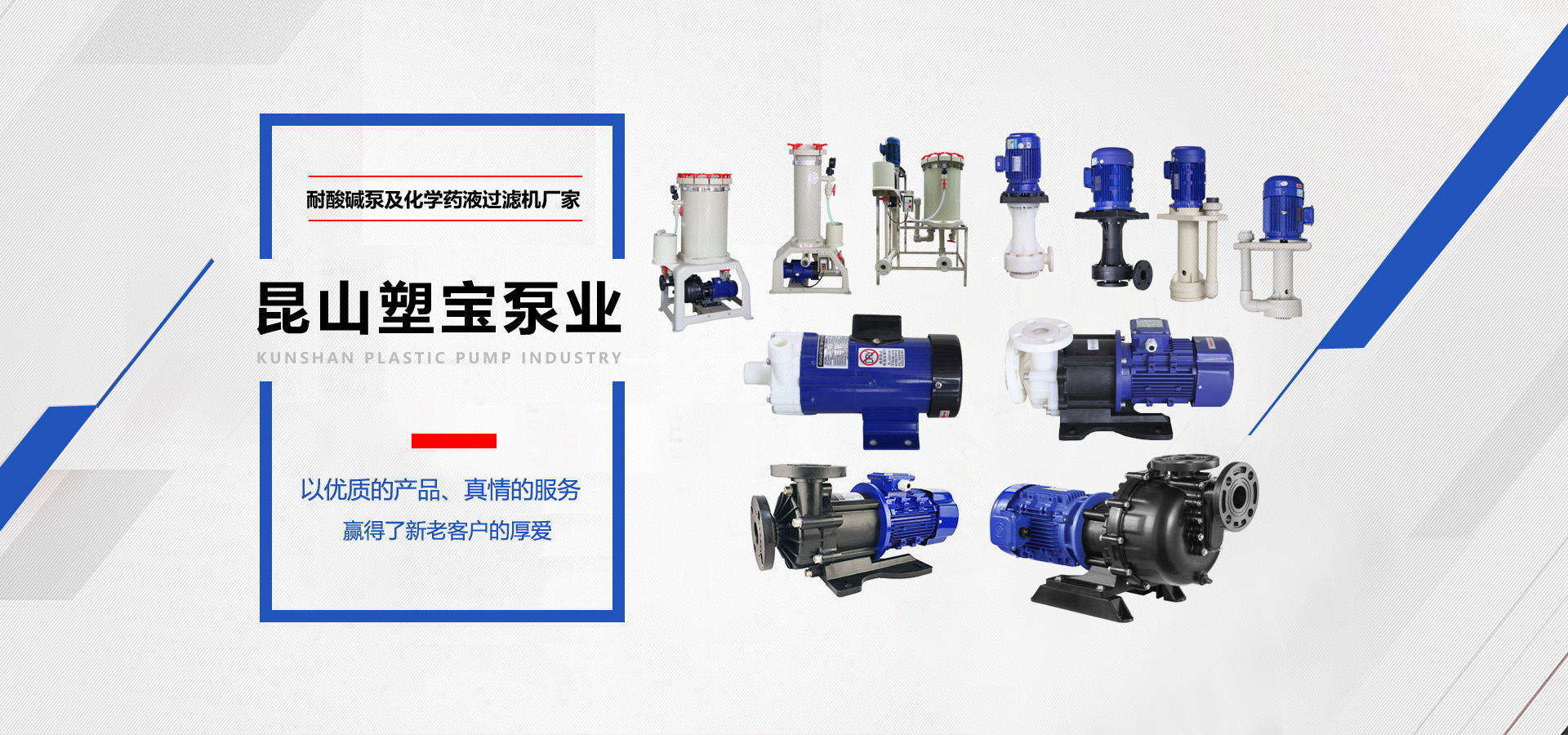 昆山塑宝泵业有限公司是专业从事化学药业过滤机、耐酸碱泵、PCB设备电镀设备等研发生产销售服务于一体的股份制企业公司拥有全套现代化检验仪器生产设备及一大批具有十几年产品专业知识和经验丰富的工程师。产品畅销全国各地并远销东南亚及欧美各国深受广大用户青睐。从产品研发设计到成品装配完成都有一套完善的检测系统,为客户提供优质、全面的解决方案。公司旗下产品畅销全国各地,并跨境销售东南亚及欧美国家,深受行业内广大客户的肯定。